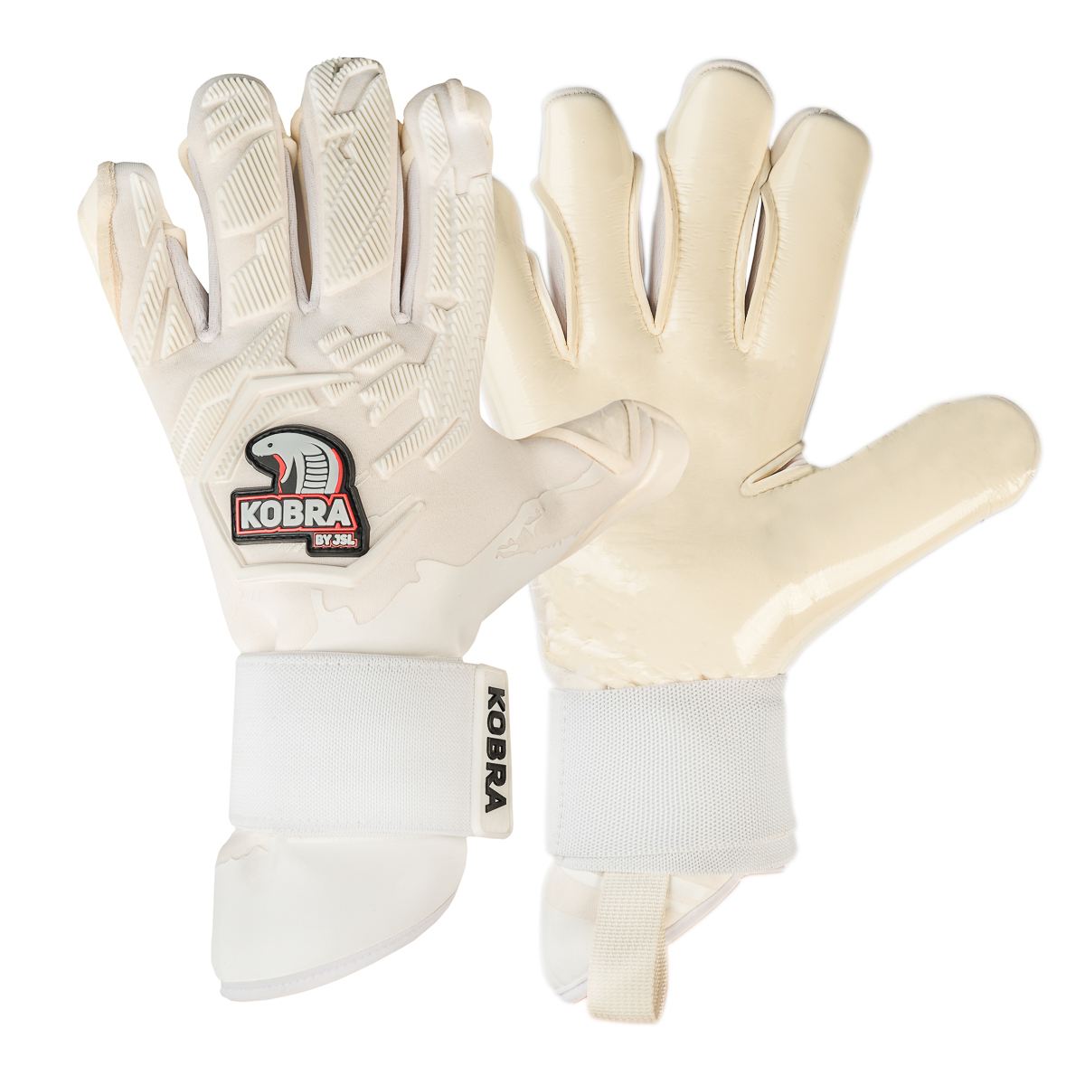 Rękawice bramkarskie JSL Keeper model Kobra White to połączenie najwyższej jakości materiałów, nowoczesnego kroju i eleganckiego wyglądu. Stworzone z myślą o maksymalnej kontroli piłki, oferują niezawodną ochronę dłoni oraz wyjątkową wygodę podczas intensywnej gry.